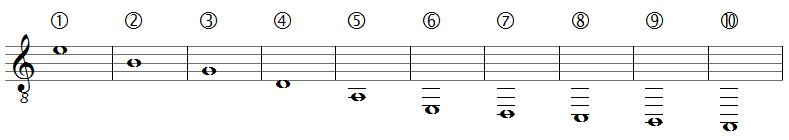 ****** for 4 pieces, the 8th string is tuned one half step up to C# instead of C